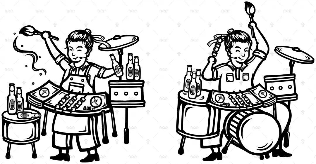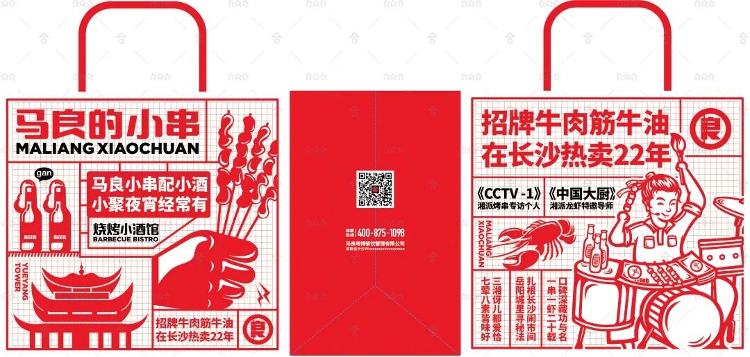 IP形象设计古今结合,既有神笔马良的古典文雅,兼具现代小酒馆馆主的诙谐时尚,创意性将烧烤摊与架子鼓结合,打造最强“烧烤DJ”,混搭出风格,混搭出个性。融合传统中华文化源远流长至今的底蕴内涵与年轻人性格的张扬独立,赋予烧烤这一来自街边的美食以鲜活生命力。