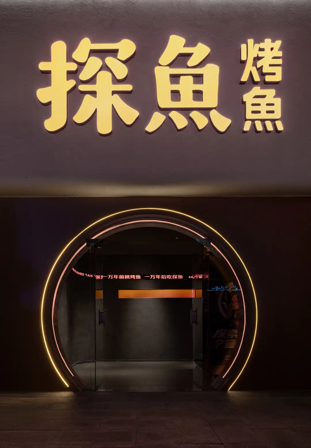 ,门头与「探ICON」视觉表达进行关联,是入内探索的邀请,也进一步加强探鱼品牌的识别度。