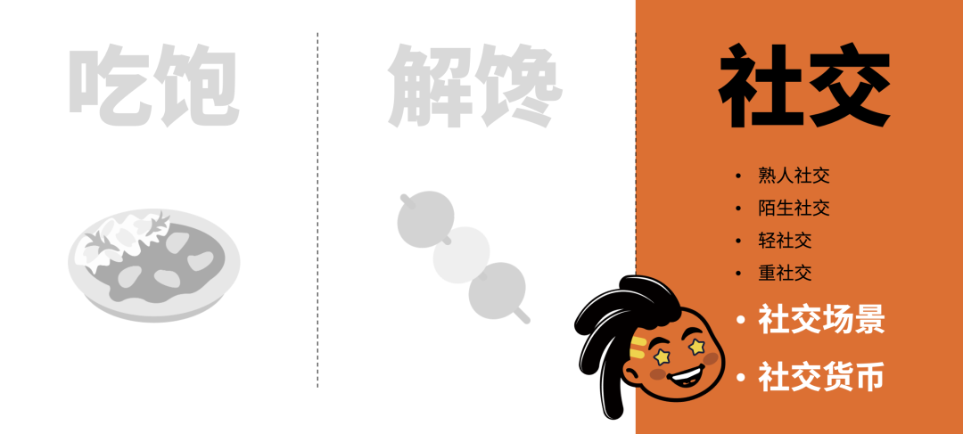 三大类,其中社交涵盖:熟人社交、陌生社交、轻社交、重社交、