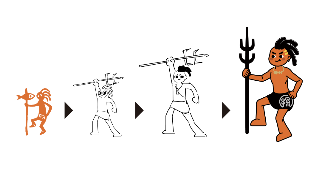 探鱼哥的标准姿势以极具动态的出发动作,配以探鱼专用工具鱼叉,体现品牌活力与个性。