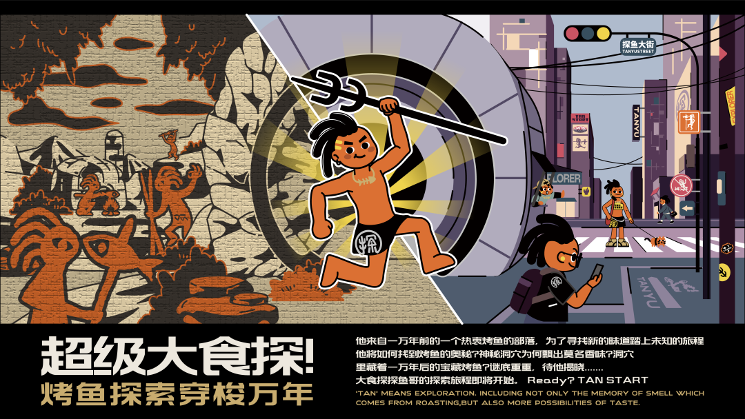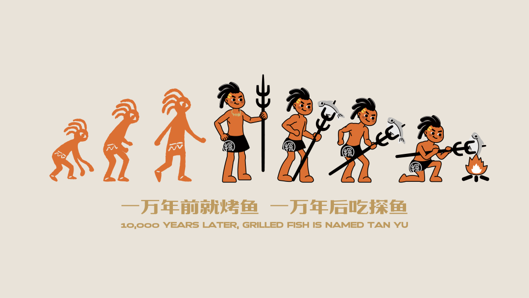 我们基于品牌理念延伸“一万年前就烤鱼,一万年后吃探鱼”,让烤鱼探索穿梭万年,从「小野人」变身「超级大食探」来连接消费者,让TA成为具有探鱼独特识别的形象载体,贯穿了这次升级的始终。