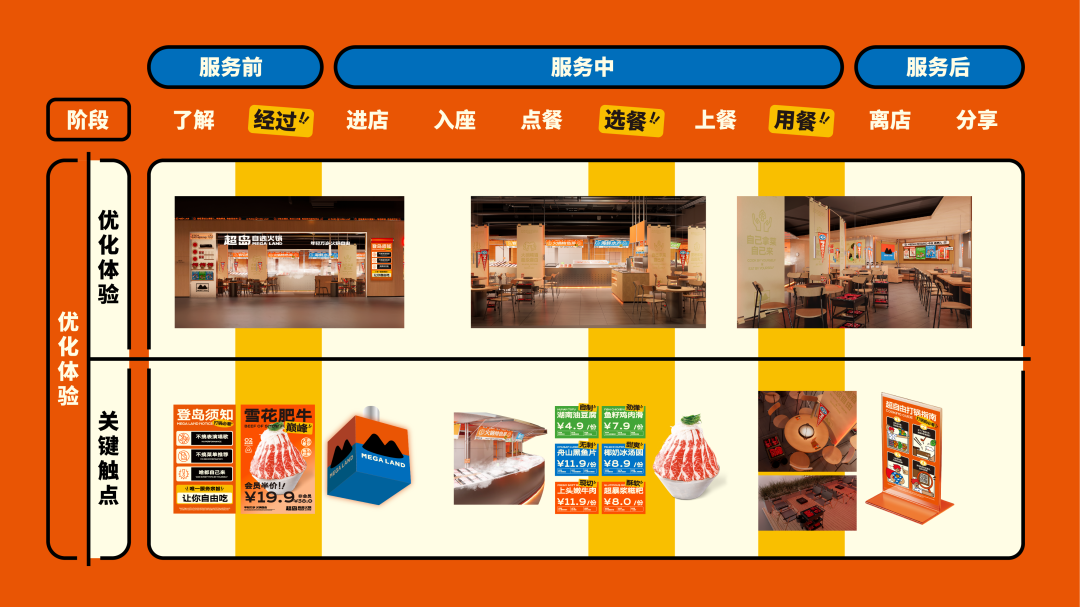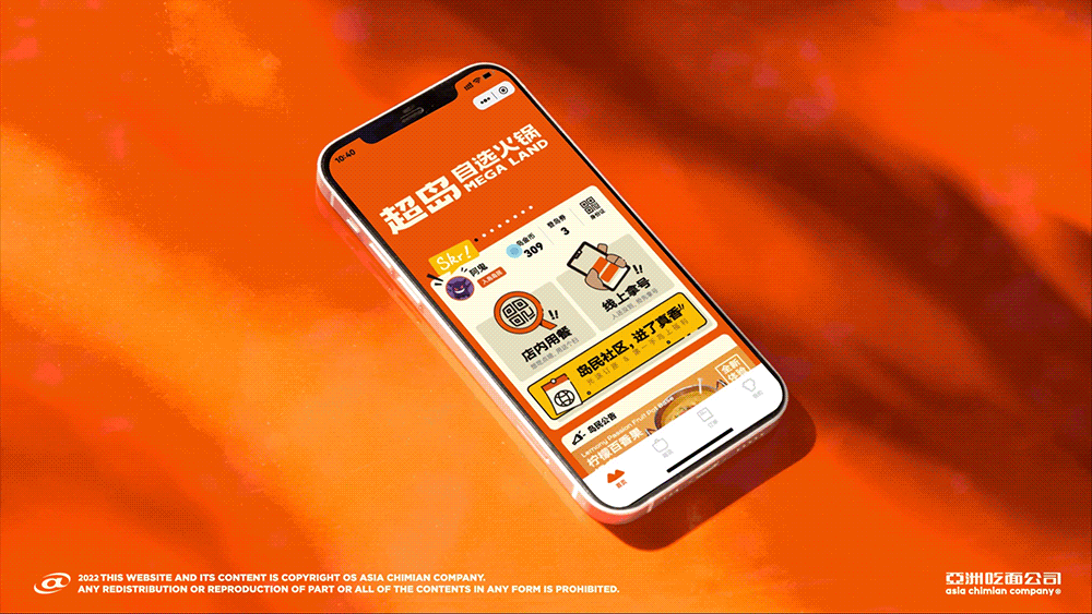 项目|超岛自选火锅 MEGA LAND 项目管理|Rosie/ Brain 文案策略|Kalannn / 杏子 服务设计|圈圈 / 新雅 品牌设计|Jayccczou /阿鬼 / 冈吉 / 丁俊杰 插画|粥粥 动态设计| OCEAN B
